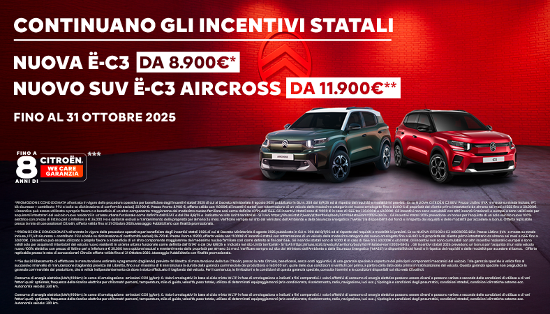 Vieni presso i concessionari Citroen per verificare se puoi accedere agli incentivi statali e come.