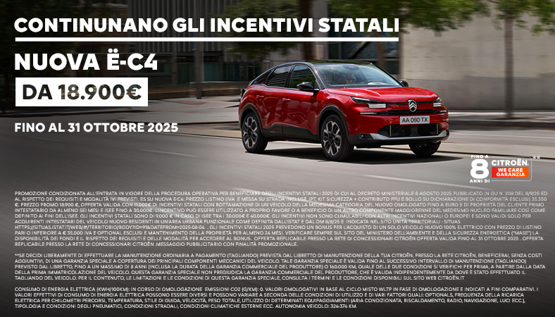 Vieni presso i concessionari Citroen per verificare se puoi accedere agli incentivi statali e come.